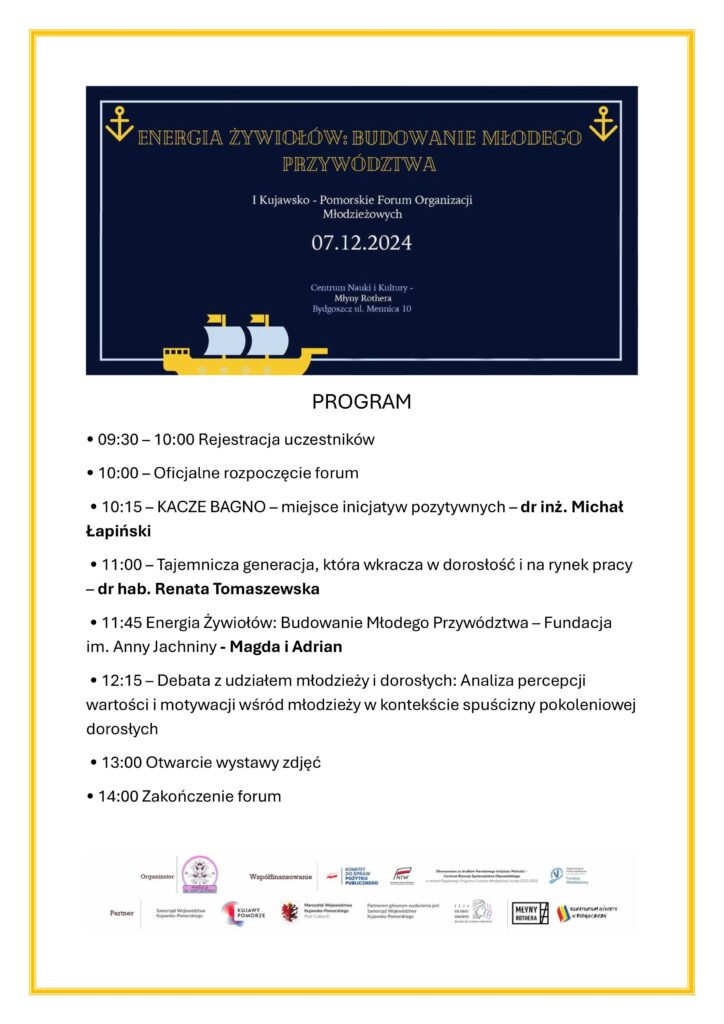 I Kujawsko-Pomorskie Forum Organizacji Młodzieżowych nie tylko integruje młodzieżowe organizacje, ale również stawia na nowatorskie podejście do edukacji i rozwoju młodzieży. Fundacja im. Anny Jachniny, organizator wydarzenia, kładzie szczególny nacisk na innowacyjne metody pracy, które wspierają kreatywność, przedsiębiorczość oraz aktywne obywatelstwo młodych ludzi.