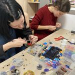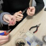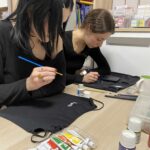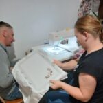 Motywem przewodnim warsztatów stała się kolorystyka Borów Tucholskich – odcienie zieleni, brązu i złota – oraz inspirowane naturą formy. Uczestnicy tworzyli tradycyjne hafty w nowoczesnej odsłonie, wykorzystując nowo zakupioną maszynę do haftu, a także projektowali biżuterię inspirowaną tą paletą barw. Ważnym elementem pracy był również recykling – przedmioty zyskiwały nowe znaczenia poprzez przemalowanie, łączenie i twórcze przekształcenia, co prowadziło do powstania zupełnie nowych jakości.