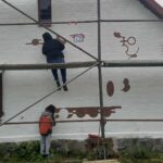 Pierwsza z nich – faza przygotowania muralu właściwego – obejmowała warsztaty koncepcyjno-przygotowawcze realizowane od 25.09.2025 r.. W tej części dominowała młodzież i dorośli, którzy pracowali nad interpretacją wzorów borowiackich oraz opracowaniem finalnej koncepcji muralu.